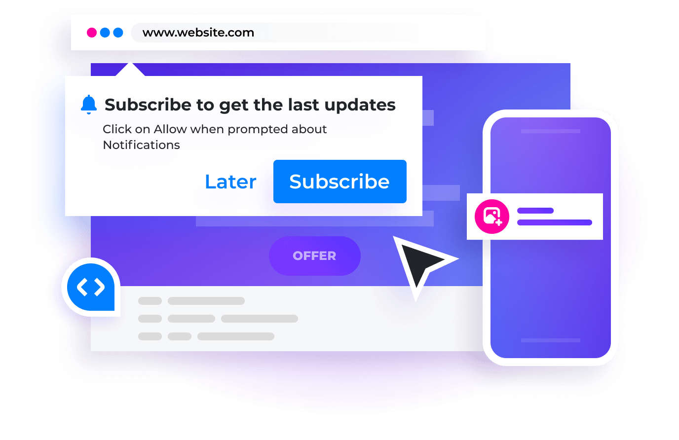 We subscribe users from your website or landing page and pay you for push notifications sent to your subscribed user database (RevShare). Easy flow and high payouts.
